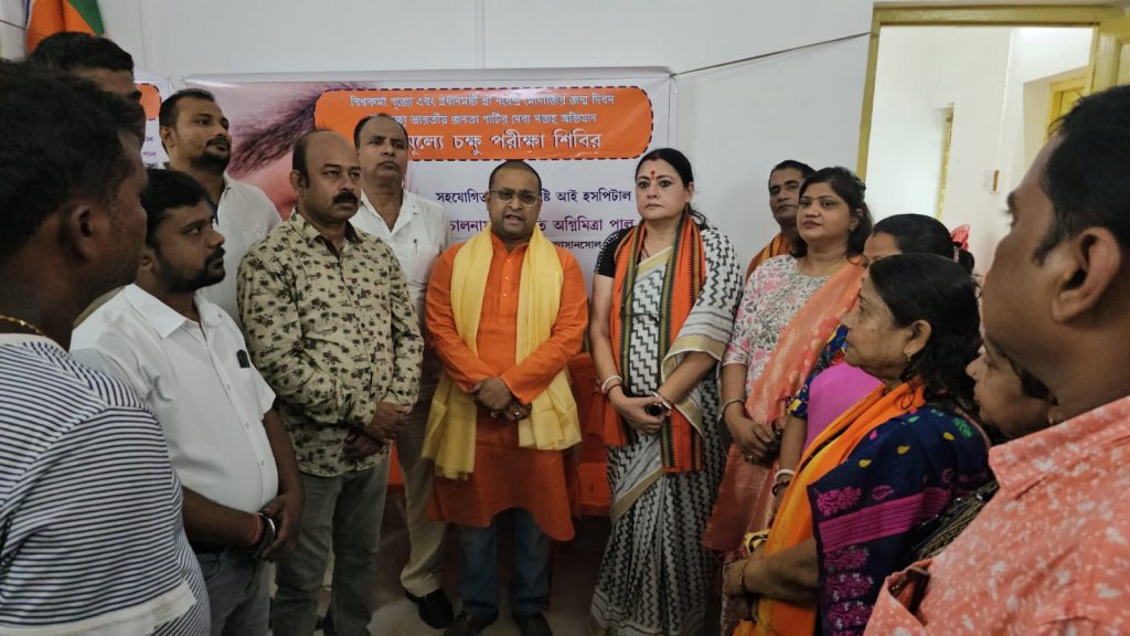बर्नपुर :भाजपा की तरफ से देश के प्रधानमंत्री नरेंद्र मोदी के जन्मदिन के मौके पर सेवा सप्ताह का पालन किया जा रहा है इसी के तहत आज उनके जन्मदिन के दिन इस्पात नगरी बर्नपुर के विधायक कार्यालय में एक निशुल्क नेत्र जांच शिविर का आयोजन किया गया इस मौके पर यहां बड़ी संख्या में लोगों के आंखों की निशुल्क जांच की गई कार्यक्रम के दौरान आसनसोल दक्षिण की विधायक अग्निमित्रा पाल भाजपा जिला अध्यक्ष बप्पा चटर्जी प्रशांत चक्रवर्ती आशा शर्मा सहित तमाम भाजपा कार्यकर्ता उपस्थित थे