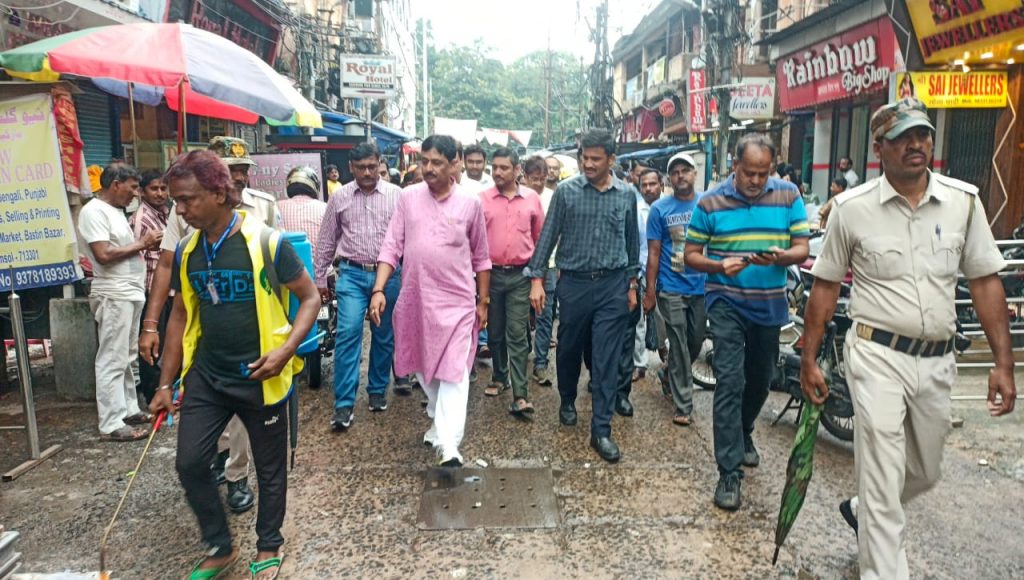 डेंगू की रोकथाम के लिए जिला शासक एस पोन्नाबलम ने किया बाजार का दौरा चेयरमैन अमरनाथ चटर्जी भी रहे मौजूद: