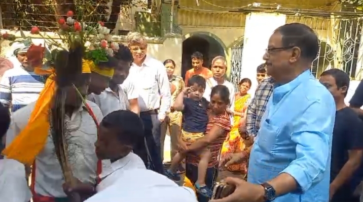 दुर्गा पूजा के अवसर पर आदिवासी समाज के लोगों ने मंत्री मलय घटक से की मुलाकात, किया पारंपरिक नृत्य का प्रदर्शन: