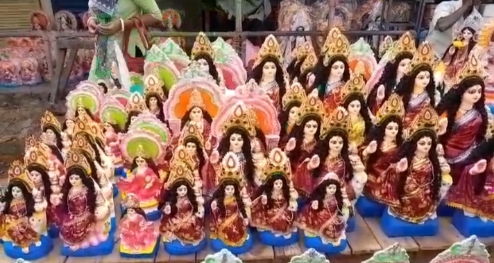 लक्ष्मी पूजा से 1 दिन पहले बाजारों में हुई लक्ष्मी प्रतिमाओं की बिक्री: