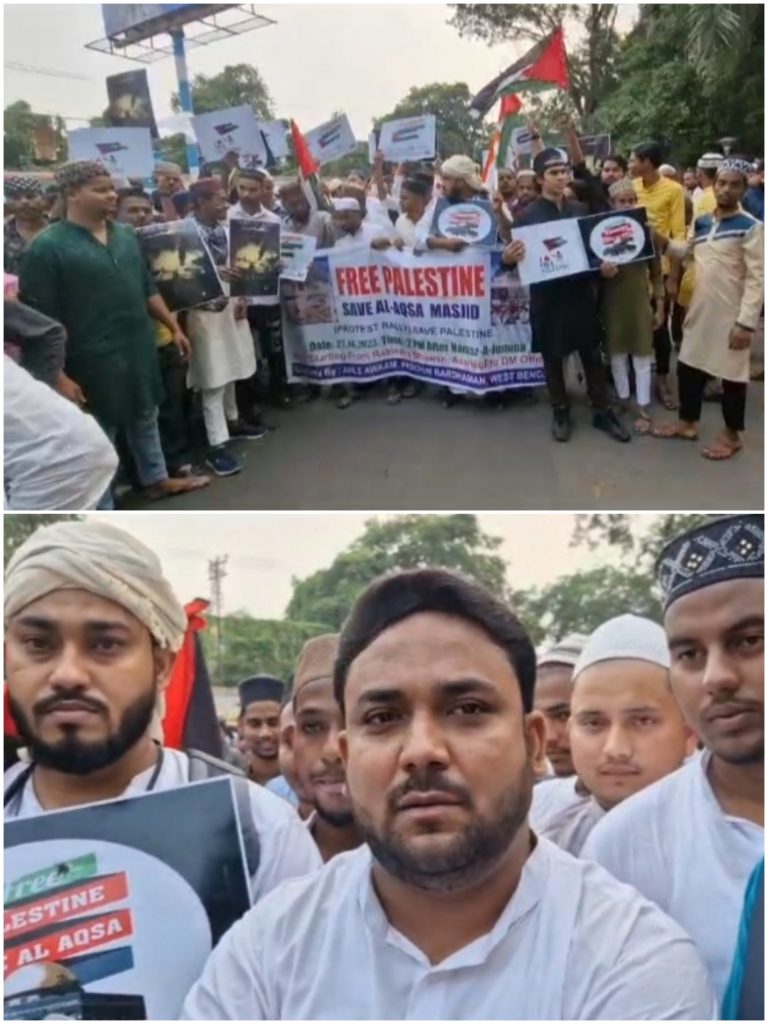 फ्री फिलीस्तीन तथा अल अक्सा मस्जिद की रक्षा की मांग करते हुए अहले आवाम पश्चिम बर्दवान जिला की तरफ से निकाली गई विरोध रैली: