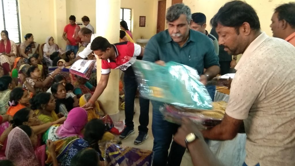 गोधूलि काली पूजा कमेटी द्वारा बांटी गई साड़ियां भाजपा नेता जितेंद्र तिवारी रहे मौजूद: