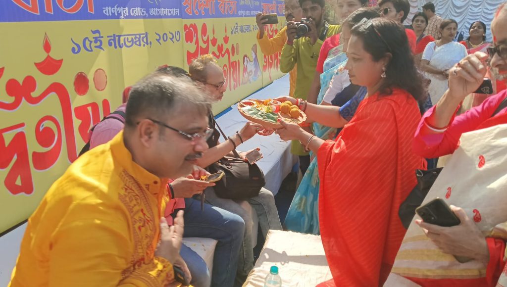 आसनसोल :समाजसेवी कृष्णेंदु मुखर्जी के नेतृत्व में आज आसनसोल के बीएनआर मोड इलाके में भैया दूज के अवसर पर एक कार्यक्रम का आयोजन किया गया स्वदेश वार्ता नामक सामाजिक संस्था के तत्वावधान में इस कार्यक्रम का आयोजन किया गया यहां पर संगठन की तरफ से कई दिव्यांग और अनाथ बच्चों को भैया दूज पर तिलक लगाया गया और उनका मुंह मीठा कराया गया इस बारे में जानकारी देते हुए कृष्णेंदु मुखर्जी ने कहा कि भैया दूज एक ऐसा त्यौहार है जो पूरे बंगाल में मनाया जाता है यह भाई बहन के प्यार का त्यौहार है इसे देखते हुए स्वदेश वार्ता की तरफ से आज यह अनोखा कार्यक्रम किया गया जिसमें न सिर्फ आसनसोल बल्कि अंडाल आदि क्षेत्र से भी बच्चे आए थे जिनको स्वदेश वार्ता के सदस्यों द्वारा तिलक लगाया गया और उनका मुंह मीठा कराया गया उन्होंने बताया कि इनमें कई दिव्यांग और अनाथ आश्रम में रहने वाले बच्चे भी हैं उन्होंने कहा कि जीवन की इन खुशियों से यह बच्चे वंचित न रहे इस वजह से इस कार्यक्रम को किया गया है उन्होंने इस कार्यक्रम को करने के लिए स्वदेश वार्ता संगठन की सराहना की और कहा कि इस तरह के कार्यक्रमों से समाज को एक बहुत अच्छा संदेश जाता है की हाशिए पर रहने वाले यह बच्चे भी समाज के मूल स्रोत का एक हिस्सा है और उनको भी वह सभी खुशियां मिलनी चाहिए जो सभी बच्चों को मिलती है वही संगठन से जुड़ी सदस्य सीमा सिनहा ने कहा कि आज तकरीबन 70 बच्चों को तिलक लगाया गया और उनका मुंह मीठा कराया गया इनमें कई दिव्यांग और अनाथ आश्रम में रहने वाले बच्चे भी हैं उन्होंने कहा कि स्वदेश वार्ता की तरफ से इस कार्यक्रम को किया गया था कि यह सभी बच्चे भी उन खुशियों को पा सके जिनसे वह वंचित रहते आए हैं