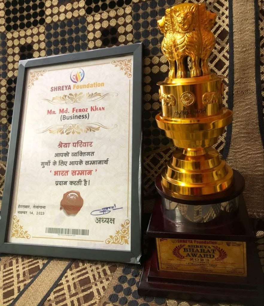 हैदराबाद :अन्तर्राष्ट्रीय समाजसेवी, मशहूर व्यवसायी और एफके ग्रुप के चेयरमैन फिरोज खान एफके विभिन्न क्षेत्रों में व्यापार के साथ-साथ अपने कॉरपोरेट सोशल रिस्पॉन्सिबिलिटी के तहत साल भर विभिन्न सामाजिक कार्य करते रहते हैं। उनके इन्हीं कामों को देखते हुए उनका प्रोफाइल चयनित हुआ और उन्हें 14 नवंबर को हैदराबाद में हुए एक सम्मान समारोह में भारत सम्मान अवॉर्ड 2023 से नवाजा गया। यह पुरस्कार फ़िरोज़ खान एफके की तरफ से एफके ग्रुप के दक्षिण भारतीय क्षेत्र की टीम ने ग्रहण किया।एफके ग्रुप के अध्यक्ष और चेयरमैन और मैनेजिंग डायरेक्टर फिरोज खान एफके ने बताया का इस पुरस्कार का श्रेय एफके ग्रुप के हर कर्मचारी, सहयोगी और देश के सभी लोगो को जाता है जिन्हों ने एफके ग्रुप को आज पूरी दुनिया में सफलता दिलाई और हर काम में मुझे समर्थन दिया सहयोग किया जिसकी वजह से ये अवॉर्ड मिला।