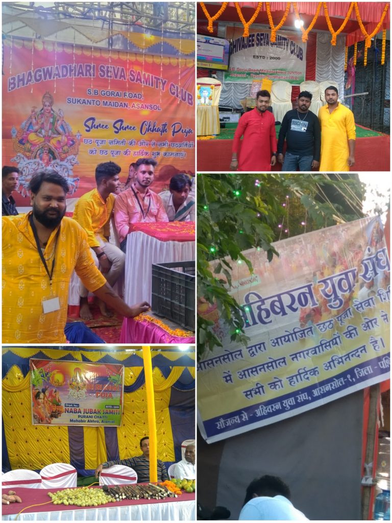 आसनसोल :आस्था का महापर्व छठ पर कल शाम को पूरे प्रदेश के साथ साथ आसनसोल में भी विभिन्न छठ पूजा समितियों की तरफ से पूरी श्रद्धा के साथ छठ का आयोजन किया गया जहां श्रद्धालुओं ने कल शाम को पहला अर्घ्य प्रदान किया। वहीं सोमवार सुबह भी श्रद्धालु घाटों पर आए और उगते सूर्य को अर्घ्य देकर इस पर्व का समापन किया। आसनसोल के एस बी गोराई रोड के किनारे विभिन्न छठ घाटों पर भी कई समितियों द्वारा छठ का आयोजन किया गया था। इनमे अहिवरण युवा संघ नव युवक समिती शिवाजी सेवा समिति क्लब भगवाधारी सेवा समिति क्लब की तरफ से भी छठ का आयोजन किया गया था। कल शाम और आज सुबह बड़ी संख्या में छठ व्रती आए और उन्होंने अस्ताचलगामी तथा उदीयमान सूर्य को अर्घ्य प्रदान किया। इस मौके पर सभी छठ समितियों की तरफ से छठ व्रती तथा अन्य श्रद्धालुओं के लिए सुरक्षा सहित सभी प्रकार के इंतजाम किए गए थे। चारों समितियों के स्वेच्छा सेवक बड़ी संख्या में घाट पर आने वाले लोगों की सुविधाओं का ध्यान रख रहे थे। प्रशासन की तरफ से भी पुख्ता इंतजाम किए गए थे