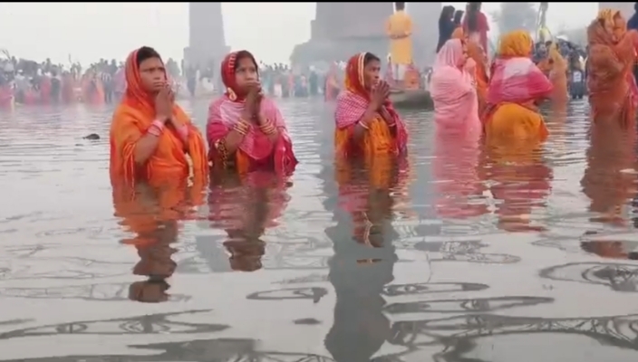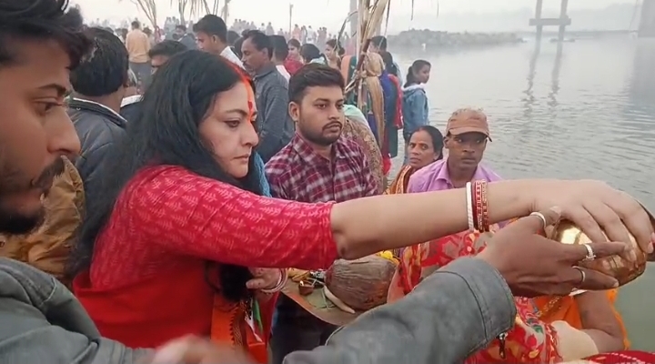 उगते सूर्य को अर्घ्य प्रदान करने आसनसोल दक्षिण की विधायक अग्निमित्रा पाल पहुंची दामोदर छठ घाट: