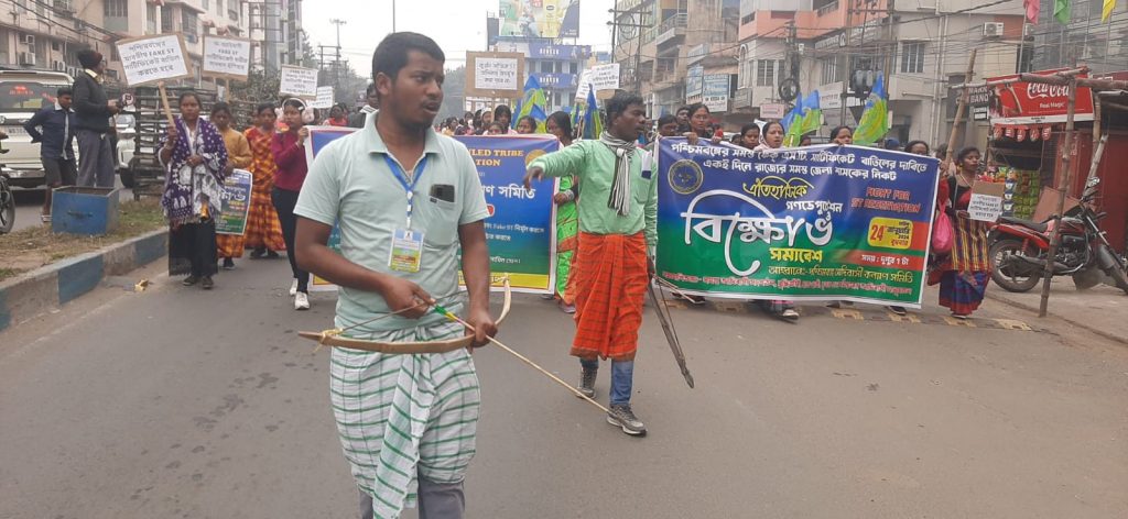 आसनसोल :पश्चिम बंगाल आदिवासी कल्याण समिति की तरफ से पूरे राज्य के साथ-साथ पश्चिम बर्दवान जिला शासक के जरिए मुख्यमंत्री ममता बनर्जी तथा पिछड़ा श्रेणी कल्याण मंत्रालय के मंत्री को ज्ञापन सोपा गया । इससे पहले संगठन के सदस्य आसनसोल के बीएनार मोड पर इकट्ठा हुए और वहां से रैली की शक्ल में जिला शासक दफ्तर तक गए इस बारे में पत्रकारों से बात करते हुए आदिवासी कल्याण समिति के राज्य सचिव पार्सल किसकु ने बताया की पूरे पश्चिम बंगाल के साथ-साथ पश्चिम वर्धमान जिले में भी गैर आदिवासी लोगों को बड़े पैमाने पर एससी एसटी सर्टिफिकेट प्रदान किया जा रहा है जिससे आदिवासी समाज के लोग शिक्षा के साथ-साथ रोजगार के क्षेत्र में भी वंचित हो रहे हैं उन्होंने कहा कि ऐसे कई उदाहरण है जहां यह देखा जा सकता है कि जो लोग आदिवासी समाज के नहीं है उनको भी इस तरह के सर्टिफिकेट प्रदान कर दिए गए हैं जिस वजह से आदिवासी समाज के लोग वंचित हो रहे हैं उन्होंने कहा कि संदेशखाली 123 विधानसभा केंद्र से सुकुमार महतो नामक एक व्यक्ति दो बार खड़े हुए और वहां से जीते हैं उन्होंने कहा कि यह विधानसभा केंद्र आदिवासी समाज के लोगों के लिए संरक्षित है ऐसे में सुकुमार महतो यहां से कैसे चुनाव लड़ सकते हैं क्योंकि वह आदिवासी नहीं है इसके साथ ही उन्होंने कहा कि कुल्टी के रहने वाले उज्जवल महतो को आसनसोल एसडीओ कार्यालय से एससी सर्टिफिकेट मिला है जबकि इसी व्यक्ति को बांकुड़ा के खातरा से ओबीसी सर्टिफिकेट मिला है उन्होंने कहा कि ऐसे हजारों उदाहरण है जिससे यह साबित होता है कि एससी एसटी सर्टिफिकेट प्रदान करने में व्यापक गड़बड़ी की गई है उन्होंने कहा कि आज जिला शासक के माध्यम से मुख्यमंत्री और पिछड़े श्रेणी कल्याण मंत्रालय को ज्ञापन सोपा गया