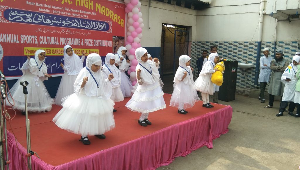 बर्नपुर :आज बर्नपुर के रहमतनगर में एक निजी भवन में अनवारुल इस्लाम जूनियर हाई मदरसा के तरफ से वार्षिक कार्यक्रम का आयोजन किया गया जिसमें इस मदरसे के बच्चों ने बढ़ चढ़कर हिस्सा लिया उन्होंने विभिन्न सांस्कृतिक कार्यक्रम पेश किये । इस मौके पर यहां कुरान की तिलावत राष्ट्रगीत गया गया स्कूल का एंथम गया गया साथी जो गणमान्य लोग आए थे उनको सम्मानित किया गया उनकी बैजपोशी की गई कार्यक्रम के दौरान किसी मदरसे के बच्चों को उनके उत्कृष्ट शैक्षणिक प्रदर्शन के लिए अतिथियों द्वारा सम्मानित किया गया इसके अलावा विभिन्न खेलकूद प्रतियोगिताओं में जिन बच्चों ने बेहतरीन प्रदर्शन किया था उनको भी आज सम्मानित किया गया इस मौके पर यहां कारी सैयद अजीमुद्दीन अशरफ अली खान सचिव परवेज खान सेडाई आदि उपस्थित थे