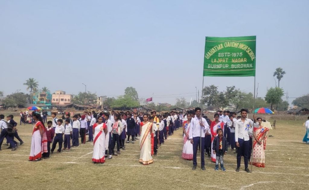 बर्नपुर महात्मा गांधी हाई स्कूल एच एस द्वारा प्रत्येक वर्ष की भांति इस वर्ष भी वार्षिक कीड़ा प्रतियोगिता का आयोजन किया गया आयोजन स्कूल के खेल शिक्षक अमर कुमार महत्व के नेतृत्व में हुआ एवं संचालन मनोज कुमार कुशवाहा के द्वारा किया गया स्कूल के सभी शिक्षक और शिक्षिकाओं ने अपने-अपने दायित्व का पालन कर वार्षिक खेल के महोत्सव में चार चांद लगा दिया वार्षिक कीड़ा की शुरुआत स्कूली विद्यार्थियों के रंगारंग नाच गान के रंगारंग कार्यक्रम से हुई और मार्च पास्ट हुआ और राष्ट्रगीत भी गया गया कुल मिलाकर 24 इवेंट्स प्रतियोगिता में रखे गए थे। इस मौके पर डीपीएससी अध्यक्ष रतिद्र नाथ मजूमदार पार्षद कंचन मुखर्जी पार्षद कहकशां रियाज बोरो 7 के चेयरमैन शिवानंद बावरी हीरापुर ट्रैफिक ओसी समाजसेवी पवन गुटगुटिया ,असीम सरकार डब्ल्यूबीटीएसटी के राजीव मुखर्जी, यूको बैंक के ब्रांच मैनेजर अजय जी ,रामनाथ तिवारी कुड्डूस खान एवं विभिन्न विद्यालयों से प्रतिनिधि उपस्थित थे। बच्चों ने भरपूर आनंद उठाया विद्यालय परिवार ने हृदय से सबका स्वागत किया एवं आभार जताया