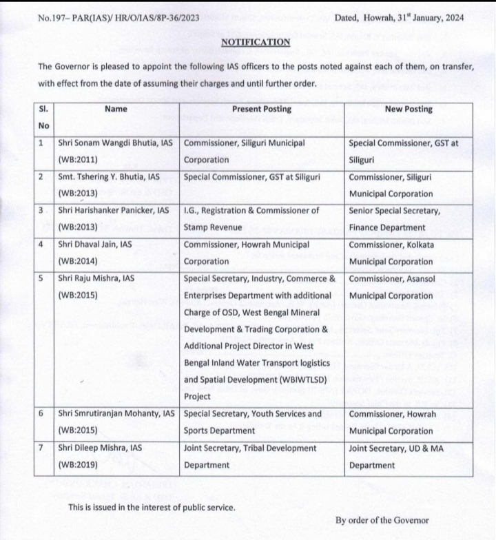 आसनसोल :एक बार फिर से आसनसोल नगर निगम के कमिस्नर का तबादला किया गया है। हाल ही आकांक्षा भास्कर को आसनसोल नगर निगम का कमिश्नर बनाया गया था। लेकिन अब उनकी जगह राजू मिश्रा यह जिम्मेदारी निभाएंगे । राज्य सरकार को तरफ से एक सर्कुलर जारी किया गया है जिसमे आसनसोल के अलावा कोलकाता हावड़ा सिलिगुड़ी निकायों के भी कमिश्नरों के तबादले किए गए हैं।
