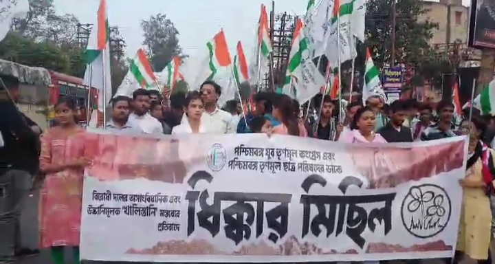 शुभेंदू अधिकारी पर सिख आईपीएस अधिकारी के अपमान का आरोप लगाते हुए तृणमूल युवा कांग्रेस और टीएमसीपी की तरफ से विरोध रैली: