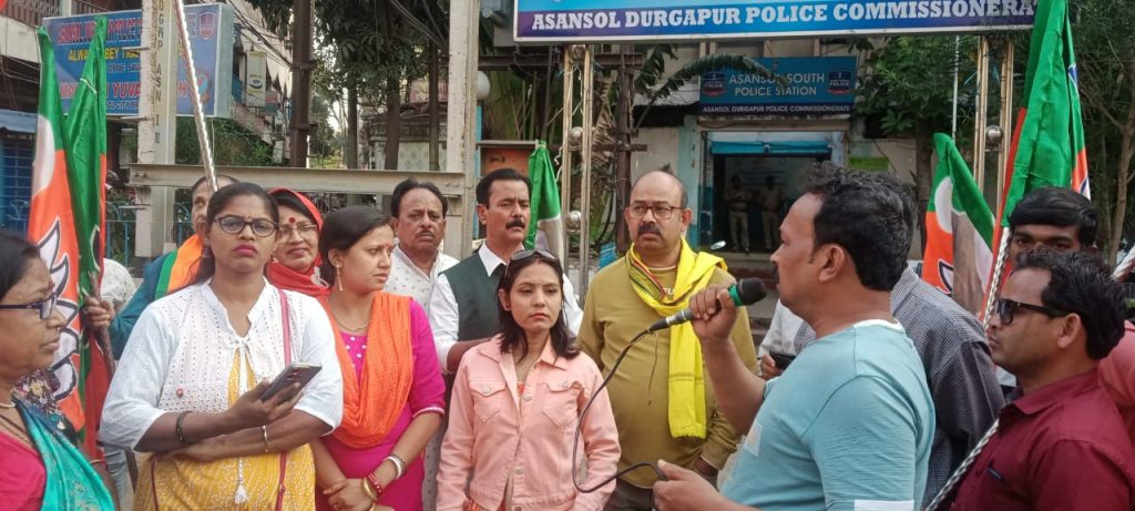 कुणाल घोष द्वारा आसनसोल दक्षिण की विधायक अग्निमित्रा पाल पर अशालीन टिप्पणी के विरोध में आसनसोल मंडल तीन भाजपा की तरफ से दक्षिण थाने के सामने प्रदर्शन:
