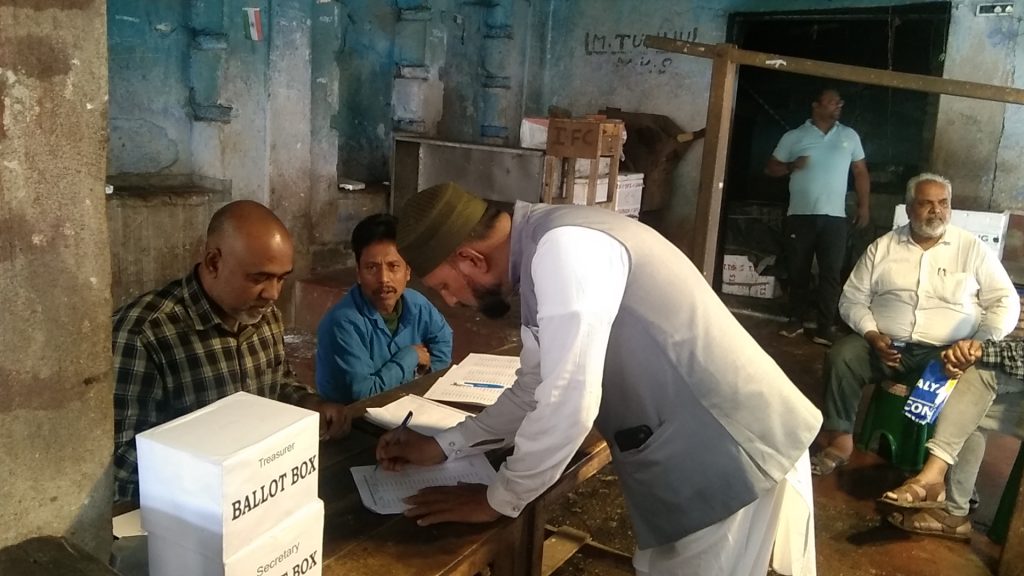 आसनसोल :आसनसोल बाजार में आज आसनसोल फिश मरचेंट वेलफेयर एसोसिएशन में चुनाव हुए अध्यक्ष सचिव और कोषाध्यक्ष पद के लिए 6 उम्मीदवार मैदान में है कुल 70 मतदाताओं ने गुप्त बैलट के माध्यम से इन 6 प्रत्याशियों के भाग्य का फैसला मत पेटी में बंद किया इस बारे में आसनसोल फिश मरचेंट वेलफेयर एसोसिएशन के निवर्तमान जनरल सेक्रेटरी मोहम्मद सज्जाद हुसैन ने कहा की हर 2 साल में यह चुनाव होते हैं यह चुनाव गुप्त बैलट के माध्यम से किया जाता है ताकि चुनाव पूरी तरह से निष्पक्ष हो और चुनावी प्रक्रिया पर कोई उंगली ना उठा सके उन्होंने कहा कि यह कमेटी 2 सालों के लिए बनाई जाती है इस कमेटी का उद्देश्य आसनसोल में जो मछली व्यापारी है उनकी बेहतरी तथा आसनसोल के लोगों को किस तरह से और अच्छी सेवा प्रदान की जा सके इस पर काम करना है