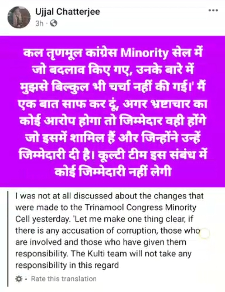 आसनसोल :हाल ही में टीएमसी द्वारा ज़िले के अल्पसंख्यक सेल के पदाधिकारियों में फेरबदल किया गया है। इसी कड़ी में 65 नंबर वार्ड टीएमसी पार्षद नदीम अख़्तर को कुल्टी ब्लॉक के टीएमसी अल्पसंख्यक सेल का अध्यक्ष नियुक्त किया गया है। इसे लेकर कुल्टी में टीएमसी ही उठापटक शुरू हो गई है। इस लिस्ट के जारी होते ही पश्चिम बर्धमान जिला टीएमसी के चेयरमैन तथा कुल्टी के पूर्व विधायक उज्ज्वल चैटर्जी ने अपने फेसबुक पेज पर लिखा कि अल्पसंख्यक सेल में जो बदलाव किया गया है उसमे कुल्टी से जिसे कुल्टी ब्लॉक की जिम्मेदारी सौंपी गई है उसके नामको लेकर कुल्टी के टीएमसी पदाधिकारियों से कोई चर्चा नहीं की गई थी और भविष्य में अगर भ्रष्टाचार का कोई आरोप लगता है तो उसकी जिम्मेदारी कुल्टी टीएमसी की नही होगी । इसे लेकर राजनीतिक बयान बाज़ी शुरू हो गई है। वरिष्ठ भाजपा नेता कृष्णेंदु मुखर्जी ने कहा कि टीएमसी किसे कहां का अध्यक्ष बनाती है यह टीएमसी का अंदरूनी मामला है इसपर भाजपा कुछ नही कहना चाहती लेकिन यह बड़ी अजीब बात है कि जिसे अभी कुल्टी ब्लॉक टीएमसी माइनोरिटी सेल का अध्यक्ष बनाया गया है उसे दो दिन पहले बहिष्कृत किया गया फिर दो दिन बाद उसे अध्यक्ष बना दिया गया। उन्होंने इसे टीएमसी के कुल्टी और आसनसोल के गुटों के बीच लड़ाई का नमूना करार दिया । उन्होंने टीएमसी को सर्कस पार्टी से तुलना करते हुए कहा कि माइनोरिटी पदाधिकारी के चेहरे में जितना भी परिवर्तन क्यूं न किया जाए माइनोरिटी समुदाए के लोग यह समझ चुके हैं कि उनको टीएमसी द्वारा सिर्फ वोट बैंक की तरह इस्तेमाल किया गया है। उनका सही मायने में विकास नहीं हुआ है। कृष्णेंदु मुखर्जी ने दावा किया कि अब माइनोरिटी समुदाए के लोग भी समझ चुके हैं कि एकमात्र नरेंद्र मोदी के नेतृत्व में भाजपा ही उनका विकास कर सकती है क्योंकि भाजपा सबका साथ सबका विकास सबका विश्वास की नीति पर चलती है और यही कारण है कि अब भाजपा की सभाओं में माइनोरिटी समुदाए की महिला पुरुष सभी ज्यादा से ज्यादा संख्या में आते हैं। उन्होंने विश्वास जताया कि आने वाले लोकसभा चुनाव में मिनोरिटी समुदाए के लोग प्रधानमंत्री नरेंद्र मोदी का काम देखकर भाजपा के समर्थन में ही मतदान करेंगे
