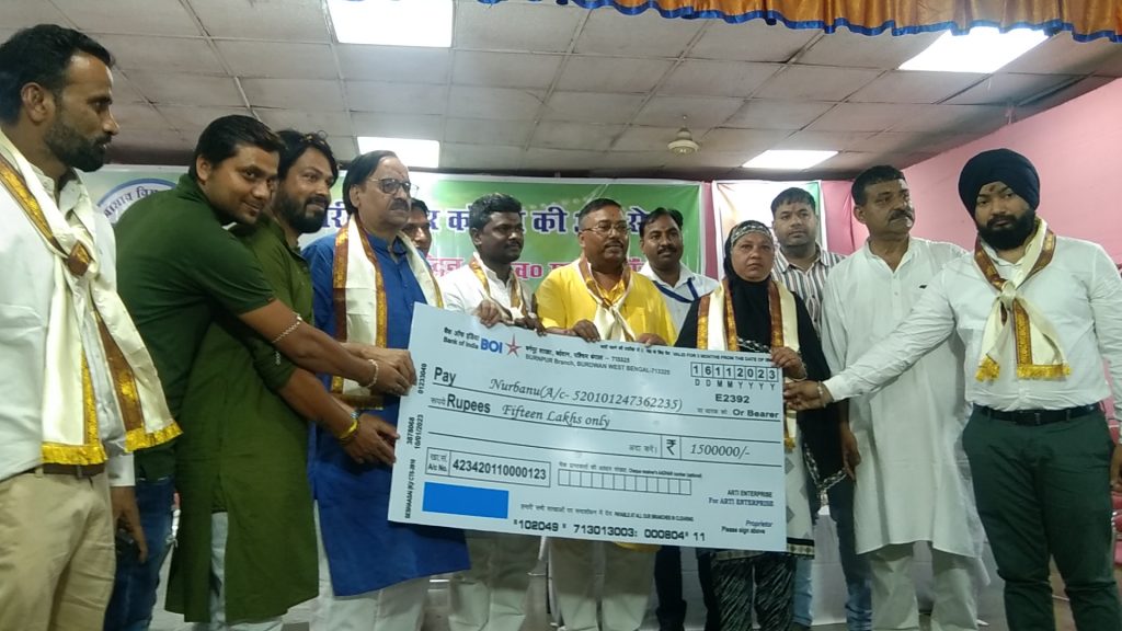 आसनसोल :आसनसोल के सीएमपीडीआई कार्यालय में आज एक कार्यक्रम का आयोजन किया गया इस कार्यक्रम के दौरान कोरोना काल में मृत सीएमसी एचएमएस से जुड़े ठेका श्रमिक स्वर्गीय मोहम्मद नुरुद्दीन और स्वर्गीय सुनील हांसदा के परिवारों को सहायता राशि के चेक प्रदान किए गए इस मौके पर यहां मंत्री मलय घटक संगठन के नेता शिवकांत पांडे पश्चिम बर्धमान ज़िला परिषद के उपसभापति विष्णु देव नोनिया सहित संगठन के और भी तमाम अधिकारी उपस्थित थे। हालांकि चेक प्रदान अनुष्ठान से पहले मंत्री मलय घटक कार्यक्रम स्थल से निकल गए । यहां पर स्वर्गीय मोहम्मद नूरुद्दीन और स्वर्गीय सुनील हांसदा के परिवार को चेक प्रदान किया गया मोहम्मद नूरुद्दीन के परिवार को 15 लाख रुपए का चेक और सूनील हांसदा के परिवार को एक लाख रुपए की सहायता राशि का चेक प्रदान किया गया इस मौके पर मंत्री मलय घटक ने कहा कि आज हमें देश में एक ऐसा प्रधानमंत्री मिला है जो देश के सभी संसाधनों को बेचने पर तुला है उन्होंने कहा कि भारत के हर एक प्रधानमंत्री ने देश को कुछ ना कुछ दिया ही लेकिन वर्तमान प्रधानमंत्री देश के राष्ट्रीय संसाधनों को बेचने पर तुले हुए हैं उन्होंने कहा कि आने वाले लोकसभा चुनाव में आसनसोल की जनता को केंद्र सरकार के इन जन विरोधी नीतियों के खिलाफ लामबंद होना है वही कार्यक्रमों के बारे में जानकारी देते हुए संगठन के सचिव जितेंद्र कुमार सिंह ने कहा कि कोरोना काल में उनके संगठन के सदस्य ठेका श्रमिक मोहम्मद नुरुद्दीन की मौत हो गई थी उसके बाद से ही उनके परिवार को केंद्र और राज्य सरकार की तरफ से मुआवजा मिलने में विलंब हो रहा था सीएमसी एचएमएस द्वारा उनके परिवार के लिए लंबी लड़ाई लड़ी गई और आज उनके परिवार को 15 लाख रुपए का चेक प्रदान किया जा रहा है वही सुनील हसदा के बारे में बताते हुए उन्होंने कहा कि वह भी एक ठेका श्रमिक थे वह ड्राइवर से उनकी भी अचानक मौत हो गई थी उनके परिवार को भी एक लाख रुपए की सहायता राशि का चेक प्रदान किया गया उन्होंने कहा कि संगठन की तरफ से कोशिश की जाएगी कि उनके परिवार को और ज्यादा सहायता पहुंचाई जा सके