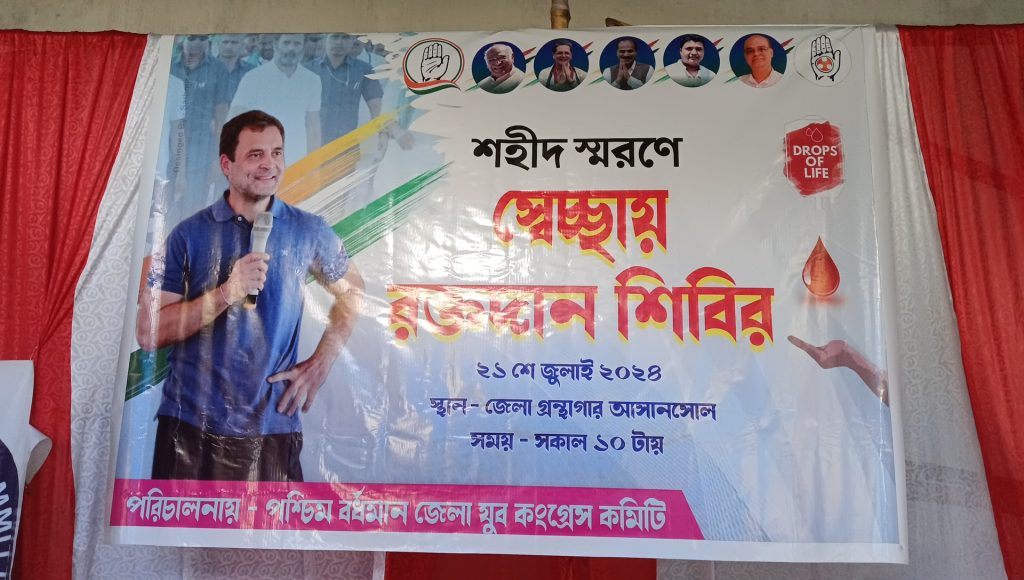 21 जुलाई के अवसर पर पश्चिम वर्धमान जिला युवा कांग्रेस की तरफ से हुआ रक्तदान शिविर का आयोजन :