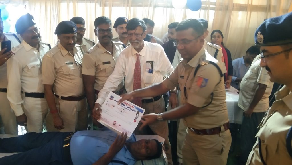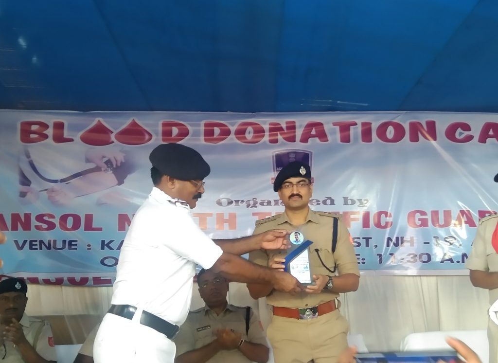 आसनसोल :आसनसोल के कल्ला मोड़ पर आसनसोल दुर्गापुर पुलिस कमिश्नरेट के नार्थ ट्रैफिक गार्ड की तरफ से बुधवार को एक रक्तदान शिविर का आयोजन किया गया। आसनसोल नॉर्थ ट्रेफिक गार्ड प्रभारी मोहम्मद अशरफुल इस्लाम के नेतृत्व में आयोजित इस रक्तदान शिविर में 60 यूनिट से ज्यादा रक्त संग्रह किया गया इस दौरान आसनसोल दुर्गापुर पुलिस कमिश्नरेट के ट्रैफिक विभाग से जुड़े अधिकारियों कर्मचारियों और सिविक पुलिस के कर्मियों ने स्वेच्छा से रक्तदान किया कार्यक्रम में आसनसोल दुर्गापुर पुलिस कमिश्नरेट के डीसी सेंट्रल ध्रुव दास मुख्य अतिथि के रूप में उपस्थित थे इनके अलावा डीसीपी ट्रैफिक वीजी सतीश पशुमर्थी एडीसीपी ट्रैफिक प्रदीप मंडल 31 नंबर वार्ड पार्षद आशा प्रसाद सहित आसनसोल दुर्गापुर पुलिस आयुक्तालय के तमाम वरिष्ठ अधिकारी और आसनसोल नॉर्थ ट्रेफिक गार्ड के सभी अधिकारी कर्मचारी और सिविक पुलिस के कर्मचारी उपस्थित थे यहां पर सभी आमंत्रित अतिथियों का मोहम्मद अशरफुल इस्लाम के नेतृत्व में फूलों का गुलदस्ता देकर और मोमेंटो प्रदान कर सम्मानित किया गया।
