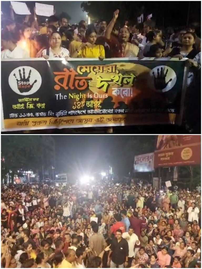 आसनसोल :कोलकाता के आरजी कर मेडिकल कॉलेज हॉस्पिटल में एक पीजीटी महिला डॉक्टर के साथ बलात्कार कर उसकी हत्या कर दिए जाने के खिलाफ पूरे देश में विरोध के स्वर सुनाई दे रहे हैं आसनसोल में भी इस घृणित कांड की निंदा की जा रही है इसे लेकर कल पूरे देश में महिलाओं द्वारा एक अनोखे तरीके से विरोध प्रदर्शन किया गया उन्होंने भारत की आजादी की पूर्व संध्या पर रात 11:50 से रात में सड़कों पर निकलकर इस कांड का विरोध किया और आरोपियों की गिरफ्तारी और उनको कड़ी से कड़ी सजा देने की मांग की आसनसोल में बीएनआर मोड़ इलाके में हजारों की संख्या में महिलाएं और पुरुष शामिल हुए और कोलकाता की उस महिला डॉक्टर के परिवार को इंसाफ दिलाने की मांग की हमने जब प्रदर्शन कर रही कुछ महिलाओं से बात की तो उनका कहना था कि कोलकाता के मेडिकल कॉलेज हॉस्पिटल में जो घटना घटी वह कोई नई घटना नहीं थी आए दिन हर उम्र की लड़कियों औरतों को इस तरह की घटनाओं का सामना करना पड़ता है चाहे वह कार्यस्थल पर हो या बसों में ट्रेनों में या सड़कों पर उन्होंने कहा कि आज यह घटना सबके सामने आई है इसे लेकर बड़े पैमाने पर विरोध प्रदर्शन किया जा रहा है लेकिन सच्चाई यह है कि इस तरह की घटनाएं रोज हो रही है कुछ मीडिया के सामने आती है कुछ नहीं आती इन महिलाओं का कहना है कि हो सकता है इस घटना में दोषियों को सजा मिले लेकिन बात सिर्फ एक घटना के दोषियों को सजा देने की नहीं है बात उस सोच में बदलाव लाने की है जो लड़कियों पर तमाम तरह की बंदिशें लगाती हैं जो कहते तो हैं कि महिलाएं और पुरुष समान है लेकिन आज भी महिलाओं के लिए कई रास्ते बंद है उन्होंने कहा कि आखिर एक महिला को यह क्यों सोचना पड़े कि वह रात में निकलेगी या नहीं क्योंकि आज महिलाएं विभिन्न पेशों में काम कर रहीं हैं ऐसे में उनको नाइट ड्यूटी भी करनी पड़ती है अगर उनको रात में निकलने में डर महसूस होगा तो वह काम कैसे करेंगी इसके अलावा महिला कहां जाती है क्या पहनती है इस पर भी उसका आंकलन किया जाता है जो कि सरासर गलत है इसीलिए आज हजारों की संख्या में महिलाएं यहां पर इकट्ठा हुई है और महिला डॉक्टर को इंसाफ दिलाने के साथ ही यह आवाज भी उठा रहीं हैं कि समाज की सोच बदलें ताकि महिलाएं बिना किसी डर या आतंक के हर जगह पर कभी भी अपना काम कर सकें उनके मन में कोई डर ना रहे