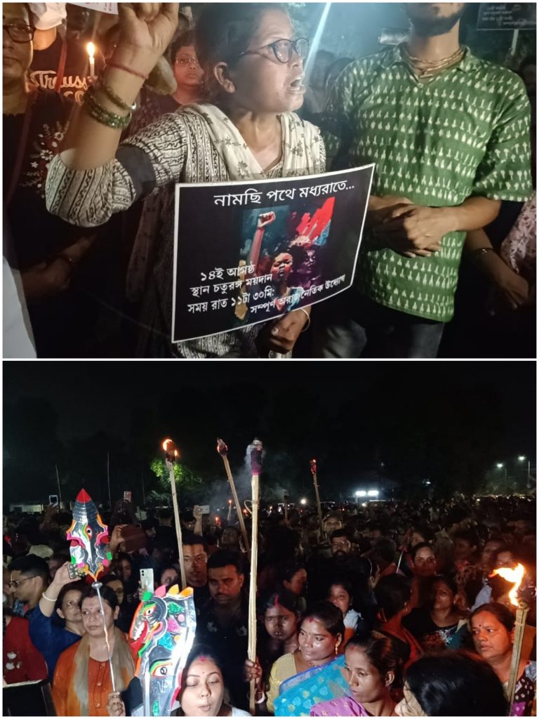 पुरे देश के साथ-साथ दुर्गापुर मे भी कोलकाता की नारकीय घटना के खिलाफ महिलाओं का रात में प्रदर्शन: