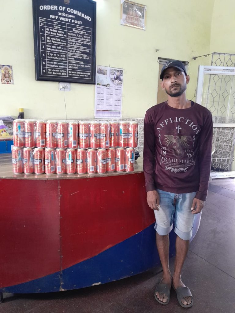 आसनसोल :शुक्रवार शाम 7:30 बजे के आसपास आरपीएफ पोस्ट आसनसोल वेस्ट के ऑफिसर और जीआरपीएस आसनसोल के अधिकारियों द्वारा नियमित जांच के दौरान आसनसोल रेलवे स्टेशन के तीन और चार नंबर प्लेटफार्म के बीच एक व्यक्ति को संदिग्ध अवस्था में घूमते हुए पाया गया जांच में उसका नाम सैयद शमीम पाया गया वह आसनसोल के दक्षिण थाना अंतर्गत बुधा इलाके का निवासी था उसके पास एक सफेद रंग का नायलॉन हैंडबैग था जांच में उस बैग से विदेशी शराब की 48 बोतलें पाई गई हर एक बोतल 500 मिलीलीटर की थी हर एक की कीमत 105 रुपए प्रति बोतल थी कुल 5040 रुपए की विदेशी शराब इस व्यक्ति के पास से बरामद की गई व्यक्ति को आसनसोल जीआरपी को सौंप दिया गया आसनसोल जीआरपी द्वारा इसके खिलाफ एक केस दर्ज किया गया