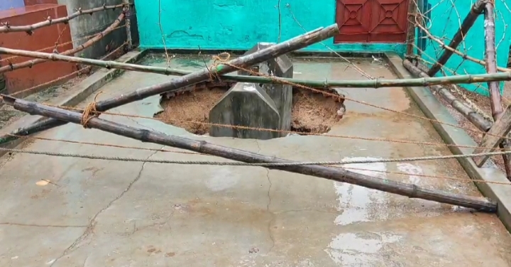 भारी बारिश की वजह से अंडाल में एक कुआं जमींदोज इलाके में आतंक: