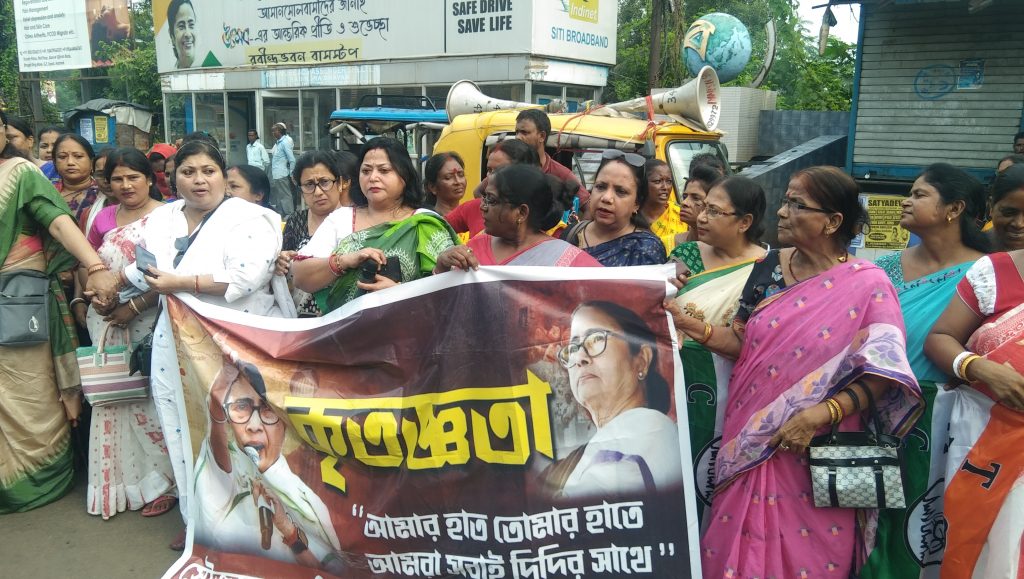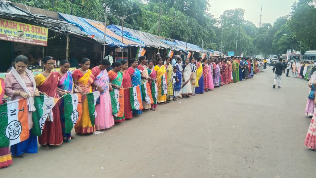 पश्चिम बर्धमान जिला महिला तृणमूल कांग्रेस की तरफ से मुख्यमंत्री ममता बनर्जी को धन्यवाद देते हुए किया गया मानव बंधन:
