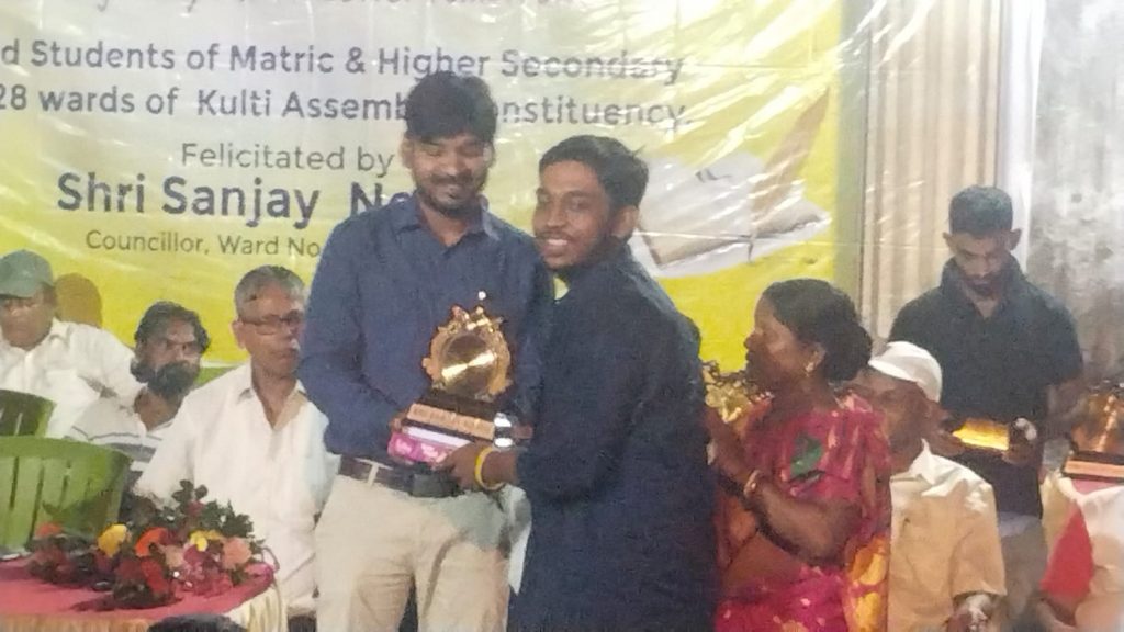 आसनसोल :आसनसोल नगर निगम के 58 नंबर वार्ड मे सोमवार को शुभकामना सम्मान समारोह कार्यक्रम का दूसरी बार आयोजन किया गया, जिस कार्यक्रम मे वार्ड संख्या 58 के तृणमूल पार्षद संजय नोनिया सहित कुलटी विधान सभा के कई गणमान्य व्यक्तियों द्वारा माध्यमिक व उच्च माध्यमिक के मेधावी छात्र और छात्राओं को पुरस्कृत किया गया, इस दौरान छात्र और छात्राओं के अभिभावक भी उनके साथ इस कार्यक्रम मे उपस्थित रहे और अपने बच्चों को पुरस्कृत होता देख खुद को गौरवान्वित भी महसूस किया। वार्ड संख्या 58 के धेमोमेन कोलियरी इलाके मे आयोजित इस कार्यक्रम मे इलाके के तृणमूल पार्षद संजय नोनिया ने बताया की कुलटी विधानसभा इलाके के कुल 28 वार्डों के माध्यमिक व उच्च माध्यमिक के कुल 110 मेधावी छात्र और छात्राओं को पुरसस्कृत किया गया है, इससे पहले भी उन्होने कुलटी विधानसभा के नियामतपुर स्थित एक मैरेज हॉल मे शुभकामना सम्मान समरोह का पहला कार्यक्रम का आयोजन किया गया, जिस कार्यक्रम मे करीब 200 माध्यमिक व उच्च माध्यमिक मेधावी छात्र और छात्राओं को पुरस्कृत किया गया, उन्होने यह भी कहा की अभी तक कुलटी विधानसभा के कुल 28 वार्डों से 300 से ऊपर माध्यमिक व उच्च माध्यमिक छात्र और छात्राओं को पुरस्कृत किया जा चूका है, आने वाले समय मे और भी ऐसे मेधावी छात्र और छात्राओं को पुरस्कृत किया जाएगा और उनका सम्मान भी किया जाएगा, जिससे वह कुलटी ही नही बल्कि आने वाले समय मे आसनसोल सहित पश्चिम बंगाल का नाम पुरे विश्व तक रौशन कर सकें, उन्होने कहा इस कार्यक्रम के तहत वह छात्र और छात्राओं को शिक्षा के प्रति और भी उत्साहित करना चाहते हैं, उनके अंदर और भी ऊर्जा भरना चाहते हैं, जिनको देख कर अन्य छात्र और छात्राएं प्रेरणा ले सकें, इस मौके पर तृणमूल नेत्री अनीता सिंह, सुजीत सिंह, धर्मवीर नोनियां, जीवन मुखर्जी, विनोद साव, विनोद यादव, महेश भारती, रामनाथ गिरी, सुनील भारती, सैयद शाहिद अनवर आदि उपस्थित थे।