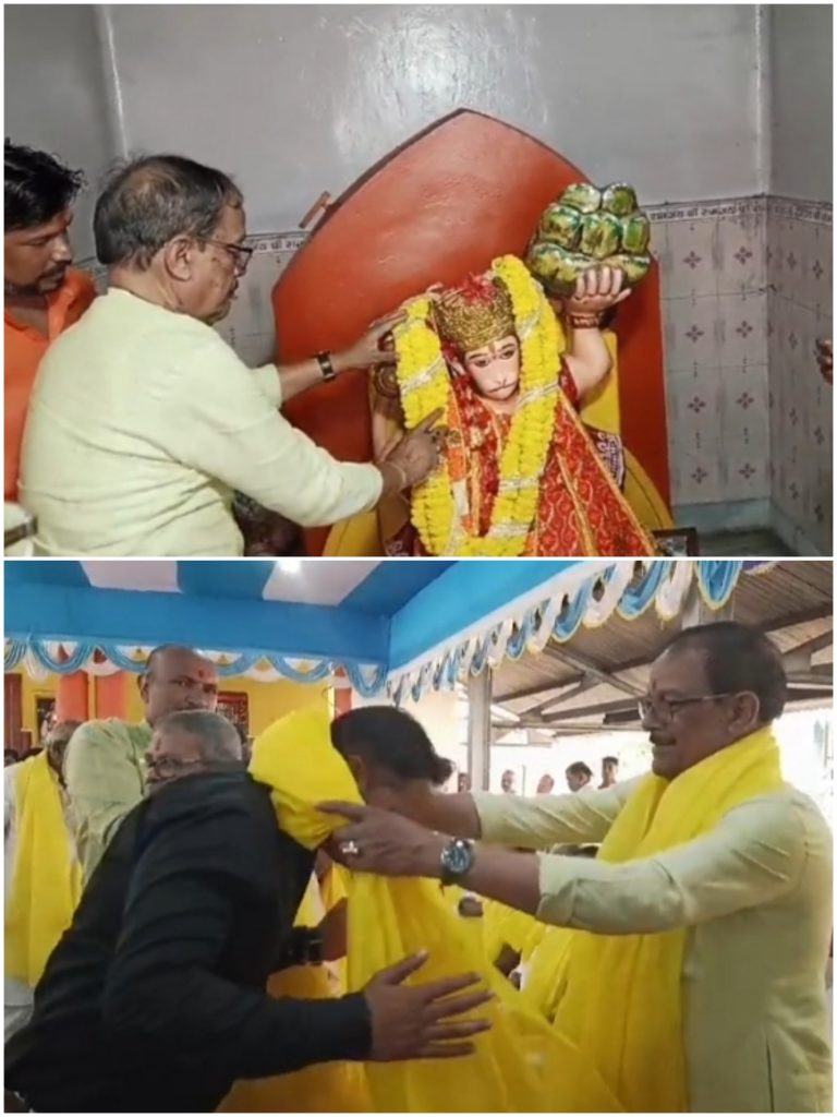 बर्नपुर :विजयादशमी पर निकलने वाले अखाड़े से पहले पगड़ी वितरण का कार्यक्रम किया जाता है बर्नपुर के शिव स्थान मंदिर प्रांगण में हर साल पगड़ी वितरण का कार्यक्रम किया जाता है इस साल भी यहां पर इस पारंपरिक रीति का पालन किया गया और पगड़ी वितरण का कार्यक्रम हुआ। इस मौके पर यहां आसनसोल उत्तर के विधायक और राज्य के कानून तथा श्रम मंत्री मलय घटक मुख्य अतिथि के रूप में उपस्थित थे उन्होंने यहां पर हनुमान मंदिर में पूजा अर्चना के इसके बाद उनको भी पगड़ी पहनाया गया और समाज के कई विशिष्ट लोगों को भी यहां पर पगड़ी वितरण किया गया। इस मौके पर मंत्री मलय घटक ने कहा कि यहां पर हर साल पगड़ी वितरण कार्यक्रम में वह आते हैं और उन्हें यह देखकर बहुत अच्छा लगता है कि इस क्षेत्र की गंगा जमनी तहजीब को बरकरार रखते हुए यहां पर समाज के सभी वर्गों धर्मों के लोग एकत्रित होते हैं और इस कार्यक्रम का आयोजन किया जाता है उन्होंने कहा कि इसी तरह से समाज को एकत्रित रखने की आवश्यकता है और हर धर्म के त्यौहार को इसी तरह से मिलजुल कर मनाने की जरूरत है