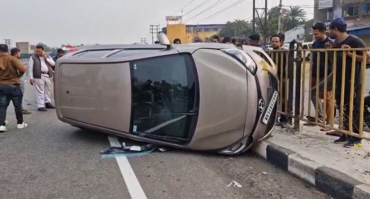 राष्ट्रीय राजमार्ग 19 पर गाय को बचाने के चक्कर में हुआ सड़क हादसा: