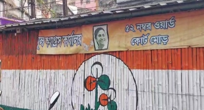 52 नंबर वार्ड पार्षद के पार्टी ऑफिस के सामने लगे टीएमसी के बैनर को फाड़ा गया: