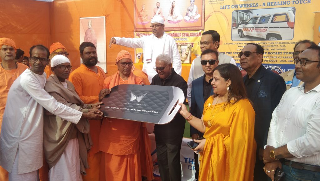 रोटरी क्लब आफ आसनसोल ग्रेटर की तरफ से एथोड़ा के रामकृष्ण पूर्णानंद सेवा आश्रम को दिया गया अत्याधुनिक वातानुकूलित एम्बुलेंस: