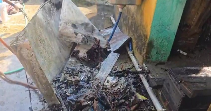 पांडवेश्वर में कोलियरी आवास में लगी आग घर के सामान जलकर राख: