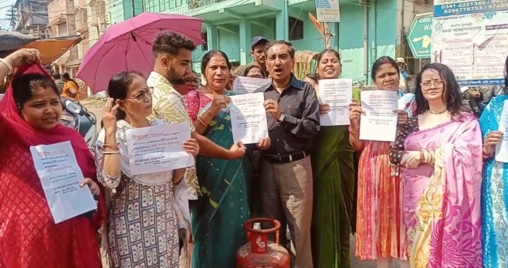 गैस सिलेंडर की बढ़ी कीमत के खिलाफ बोरो चेयरमैन डॉ देवाशीष सरकार के नेतृत्व में विरोध प्रदर्शन