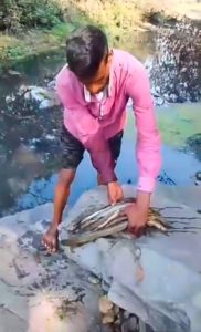 विषैली हुई माँ कल्यानेश्वरी मंदिर से बह रही जोडिया नदी, पानी के ऊपर मरी हुई मक्षलियों को बहता देख लोगों मे दहशत का माहौल
