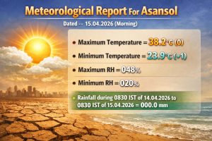 आज दिनांक 15 अप्रैल 2026 की सुबह जारी मौसम विभाग की रिपोर्ट के अनुसार, आसनसोल में गर्मी का असर लगातार बना हुआ है।