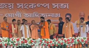 भाजपा प्रत्याशी अरिजीत राय के समर्थन में उत्तर प्रदेश के मुख्यमंत्री योगी आदित्यनाथ की सालानपुर में सभा