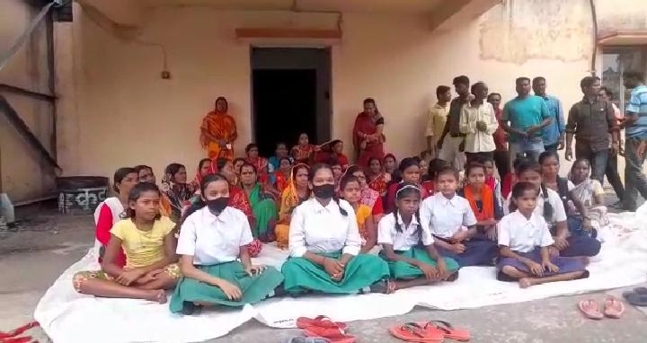 स्कूली बस सेवा बंद करने से नाराज अभिभावकों का रामनगर कोलियरी महाप्रबंधक कार्यालय के सामने विरोध प्रदर्शन: