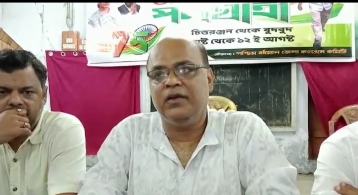 सोमवार को पश्चिम बर्दवान जिला कांग्रेस कमेटी की तरफ से बर्नपुर के इंटक कार्यालय में जिला अध्यक्ष देवेश चक्रवर्ती की अगुवाई में एक संवाददाता सम्मेलन किया गया इस मौके पर कांग्रेस नेता प्रसनजीत पुईतुंडि इंटक नेता हरजीत सिंह तरुण गांगूली इजाज कांदि पंपू मजूमदार बीएन सिंह सोमनाथ मुखर्जी भी उपस्थित थे। इस मौके पर पश्चिम बर्दवान जिला कांग्रेस अध्यक्ष देवेश चक्रवर्ती ने कहा कि 9 से 12 अगस्त तक संपूर्ण भारत में कांग्रेस की तरफ से भारत जोड़ो पदयात्रा का आयोजन किया गया है उन्होंने कहा कि इस कड़ी में पश्चिम बर्दवान में चितरंजन से बुद बुद तक पदयात्रा निकाली जाएगी इसका उद्देश्य है कि जिस तरह से केंद्र की भाजपा सरकार की जनविरोधी नीतियों के कारण आज पूरे देशवासी त्राहि-त्राहि कर रहे हैं उसके खिलाफ जनचेतना को उजागर करना उन्होंने कहा कि केंद्र की भाजपा सरकार आज राष्ट्रीय संसाधनों को निजी हाथों में सौंप रही है देश की आर्थिक कमर टूट चुकी है लेकिन उसे इन सब चीजों से कोई मतलब नहीं है । देवेश चक्रवर्ती ने कहा कि राष्ट्रपिता महात्मा गांधी ने 9 अगस्त 1942 को अंग्रेजों भारत छोड़ो का नारा दिया था और उनके इस आंदोलन के कारण महेश 5 सालों के अंदर अंग्रेजों को भारत छोड़ना पड़ा ठीक उसी तरह कांग्रेस आज के परिपेक्ष में 9 अगस्त से ही भारत छोड़ो का नारा देकर एक अभियान शुरू करने जा रही है क्योंकि जिस तरह से भारतीय जनता पार्टी धर्म के नाम पर लोगों को विभाजित कर रही है उससे देश की संप्रभुता पर खतरा मंडराने लगा है इसी के खिलाफ भारत छोड़ो का नारा देकर यह अभियान शुरू किया जा रहा है ।