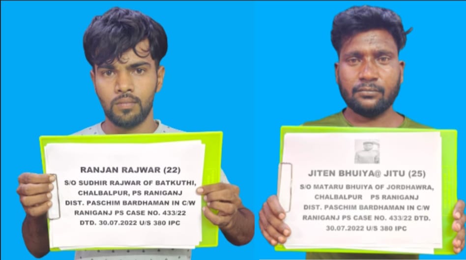 रानीगंज के जेके नगर क्षेत्र के चल बलपुर कॉलोनी में हुई एक चोरी की घटना का पर्दाफाश पुलिस ने महज 2 दिनों के अंदर कर दिया बताया जा रहा है कि चलबलपुर कॉलोनी निवासी किरण सिंह 5 जुलाई को घर में ताला लगाकर अपने रिश्तेदार के घर गए थे जब वह वापस आए तो देखा कि दरवाजे पर लगा ताला टूटा हुआ है और घर में रखा सारा सामान चोरी हो गया है यह देखते ही उनके होश फाख्ता हो गए और उन्होंने फौरन नीमचा फांड़ी में इसकी शिकायत दर्ज की किरण सिंह द्वारा शिकायत दर्ज करने के तुरंत बाद नीमचा फांड़ी प्रभारी रंजीत विश्वास की अगुवाई में पुलिस हरकत में आ गई और महज 2 दिनों के अंदर मंगलवार को चोरी हुए सभी सामान के साथ दो आरोपियों को धर दबोचा पकड़े गए दो आरोपियों के नाम है जीतू भूईंया तथा राजन राजभर । रंजीत विश्वास के नेतृत्व में चलाए गए इस अभियान मे ना सिर्फ दोनों आरोपियों को गिरफ्तार किया गया बल्कि चोरी हुआ सारा सामान बरामद कर किरण सिंह को लौटा दिया गया पुलिस की इस कार्यवाही से किरण सिंह बेहद खुश हैं और उन्होंने पुलिस का शुक्रिया अदा किया उन्होंने कहा कि जब उनके घर में चोरी हुई थी घर का मंजर देखकर उनके पांव तले से जमीन खिसक गई थी क्योंकि घर पर रखे बेशकीमती सामान पर चोरों ने हाथ साफ कर दिया था लेकिन जिस तरह से नीमचा फांड़ि की पुलिस ने त्वरित कार्रवाई करते हुए न सिर्फ चोरों को पकड़ा बल्कि उनका सारा सामान भी बरामद कर लिया इससे वह बेहद खुश हैं और पुलिस के शुक्रगुजार है