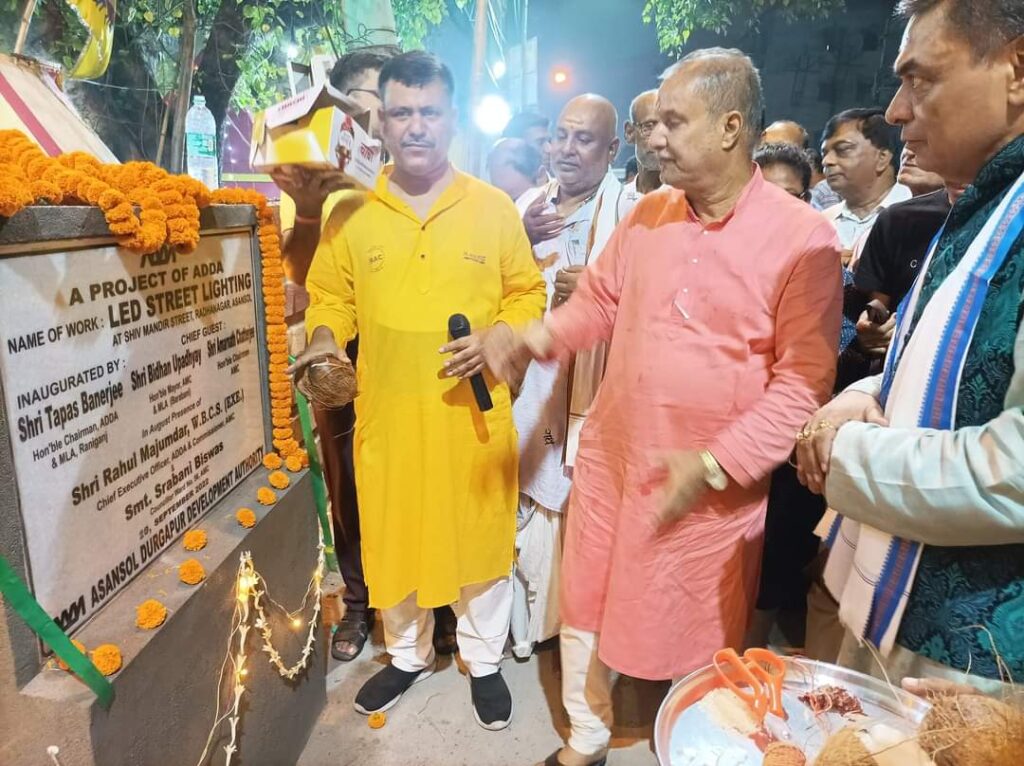 आसनसोल :आसनसोल के चित्रा इलाके के निकट राधा नगर रोड के किनारे स्थित शिव मंदिर स्ट्रीट पर रानीगंज के विधायक और एडीडीए चेयरमैन तापस बनर्जी ने एलईडी स्ट्रीट लाइट का उद्घाटन किया। इस मौके पर आसनसोल के विशिष्ट उद्योगपति और समाजसेवी पवन गुटगुटिया सहित शिव मंदिर से जुड़े तमाम गणमान्य लोग मौजूद थे। यहां बीते लंबे समय से एक स्ट्रीट लाइट की मांग की जा रही थी यहां एक शिव मंदिर है जहां शाम को भी बड़ी संख्या में श्रद्धालु आते हैं लेकिन स्ट्रीट लाइट ना होने से उनको भारी परेशानी होती है आखिरकार आसनसोल दुर्गापुर विकास परिषद द्वारा यहां स्ट्रीट लाइट का बंदोबस्त किया गया कल तापस बनर्जी ने इसका उद्घाटन किया