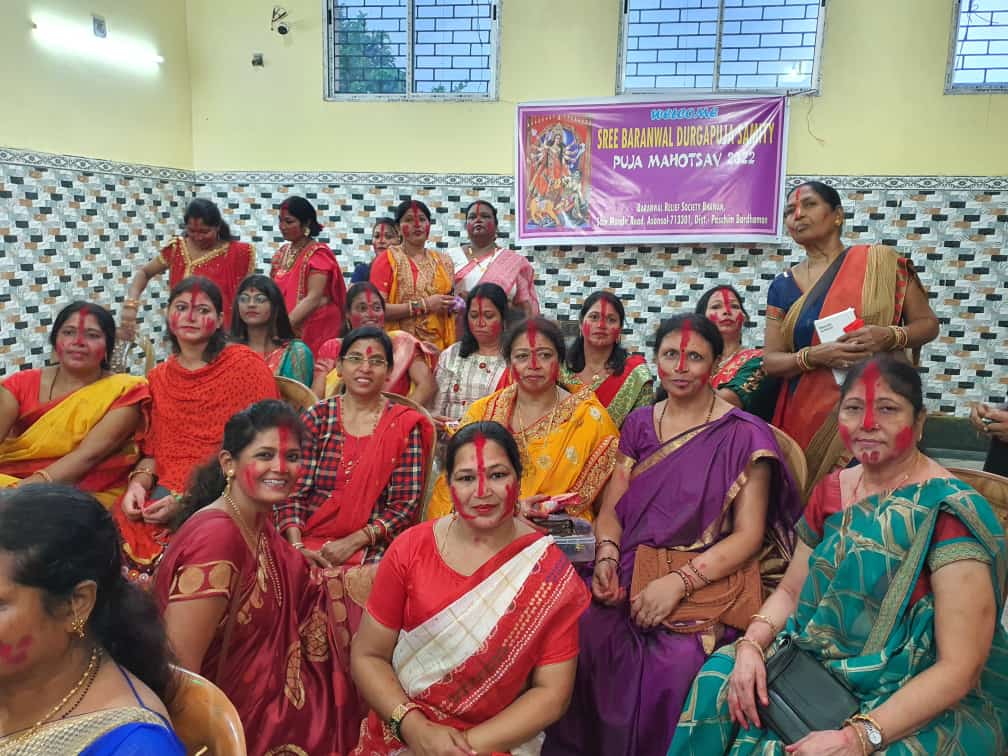 आसनसोल :दुर्गा पुजा बंगाल का सबसे बड़ा त्योहार है । दशमी को भले ही इसका समापन हो गया हो लेकिन आने वाले साल फिर से दुर्गा पुजा मानने की आस अभी से लोगों के मन में है । इस विषाद और आने वाले साल की खुशियों को एकसाथ समेटकर शिल्पांचल के विभिन्न हिस्सों में विजया दशमी की खुशियां मनाई गई। इसी क्रम में बर्नवाल दुर्गा पूजा समिति ने भी विजयदशमी की खुशियां एक साथ मनाईं तथा विसर्जन में बढ़ चढ़कर हिस्सा लिया। इस मौके पर मनोज बर्नवाल विक्रांत बर्नवाल शीला बर्नवाल नीरज राजकुमार दिलीप विक्रांत नितेश शीला बर्नवाल अंजना सोनल नमिता गीता अरुणा रेखा सुनीला बबीता पुष्पा सुनीता सहित करीब 200 लोगों ने भाग लिया।