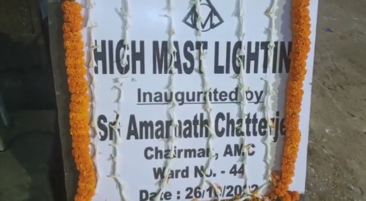 नगर निगम के चेयरमैन अमरनाथ चटर्जी ने किया हाई मास्ट लाइट का उद्घाटन:
