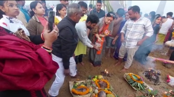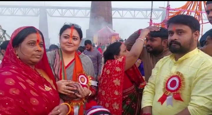 उगते सूर्य को अर्घ्य प्रदान करने आसनसोल दक्षिण की विधायक अग्निमित्रा पाल पहुंची दामोदर छठ घाट: