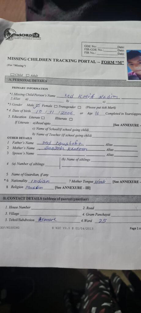 आसनसोल :आसनसोल नगर निगम के 25 नंबर वार्ड के रहने वाले मोहम्मद काशिफ़ नदीम बीते मंगलवार से लापता है। आज टीएमसी पार्षद फनसबी आलिया लापता कासिफ की मां और परिवार के अन्य सदस्यों को लेकर आसनसोल उत्तर थाने पहुंची और वहां एक रिर्पोट दर्ज कराई गई। कासिफ की मां ने कहा की मंगलवार को उनका बेटा मदरसे से पढ़के लौटा नहीं । वह मंगलवार से ही लापता है । उन्होंने बताया कि उनका बेटा माध्यमिक पास है । उन्होंने प्रशासन से उनके बेटे को जल्द से जल्द ढूंढने की अपील की