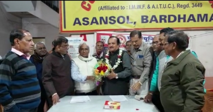 आसनसोल* :बुधवार को आसनसोल के चेलीडंगाल इलाके में स्थित ऐटक कार्यालय में संगठन की तरफ से गुरदास चक्रवर्ती को संगठन का नया जनरल सेक्रेटरी चुना गया । दरअसल हाल ही में सीएमएस के जनरल सेक्रेटरी आर सी सिंह का लंबी बिमारी के बाद दिल्ली में निधन हो गया था। इस मौके पर गुरदास चक्रवर्ती ने कहा कि यह उनके लिए बहुत बड़े सम्मान की बात है कि आरसी सिंह जैसे व्यक्ति के देहांत के बाद उनको संगठन का जनरल सेक्रेटरी चुना गया है । गुरुदास चक्रवर्ती ने कहा कि आरसी सिंह सिर्फ सीएमएस के जनरल सेक्रेटरी नहीं थे वह एक प्रखर श्रमिक नेता थे जिनकी पकड़ सभी दलों के श्रमिक सम्मान करते थे। क्योकि उन्होंने कभी भी श्रमिकों के हितों के साथ समझौता नहीं किया और उन्होंने हमेशा प्रबंधन से संघर्ष करके श्रमिकों के हितों को सर्वोपरि रखते हुए आंदोलन को संचालित किया उनके देहांत के बाद आज उन्हें सीएमएस का जनरल सेक्रेटरी बनाया गया है यह उनके लिए बेहद गर्व की बात है वह भी दिवंगत आरसी सिंह के आदर्शों पर चलते हुए श्रमिक हितों को सर्वोपरि रखते हुए कार्य करते रहेंगे वही संगठन के एक वरिष्ठ पदाधिकारी ने कहा कि आरसी सिंह के देहांत के बाद आज गुरदास चक्रवर्ती को सर्वसम्मति से सीएमएस का जनरल सेक्रेटरी बनाया गया है और अगला कॉन्फ्रेंस होने तक गुरदास चक्रवर्ती ही यह जिम्मेदारी संभालेंगे