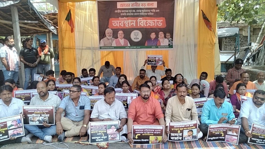 अदालत परिसर में भाजपा की तरफ से धरना टीएमसी पर लगाया भ्रष्टाचार का आरोप: