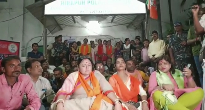 भाजपा विधायक अग्निमित्रा पाल ने हीरापुर थाने के सामने किया विरोध प्रदर्शन: