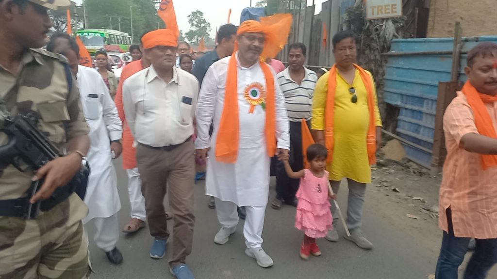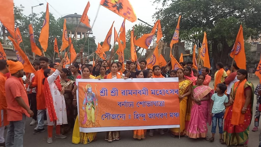आसनसोल :हिंदू जागरण मंच की तरफ से आज आसनसोल के फतेहपुर से भव्य शोभायात्रा निकाली गई जो कि कुमारपुर काली मंदिर पर आकर खत्म हुई। इसमें बड़ी संख्या में श्रद्धालु शामिल हुए इस शोभायात्रा में भाजपा जिला अध्यक्ष दिलीप दे भाजपा नेता कृष्णेन्दु मुखर्जी सहित कई विशिष्ट व्यक्तियों ने भी शिरकत की इस बारे में अपना वक्तव्य रखते हुए कृष्णेन्दु मुखर्जी ने कहा कि आज राम नवमी के अवसर पर विशाल शोभायात्रा में श्रद्धालुओं का उत्साह देखा जा रहा है वह अभूतपूर्व है इससे पहले कभी भी इतनी बड़ी तादाद में श्रद्धालुओं का हुजूम नहीं उमड़ा था इसकी सिर्फ एक ही वजह है कि आज पूरे बंगाल में जो रावण राज चल रहा है उसके खिलाफ आज सभी सनातन धर्मावलंबी मर्यादा पुरुषोत्तम भगवान श्री राम के आदर्शों पर चलते हुए सड़कों पर उतर आए हैं । यही वजह है कि पहले आसनसोल में जितने रामनवमी पूजा का आयोजन किया जाता था इस साल उससे दोगुने आयोजन हो रहे हैं। वही दिलीप दे ने कहा के आज रामनवमी है आज के दिन हजारों की तादाद में राम भक्त सड़कों पर उतर आए हैं कल भी राम भक्त इसी तरह सड़कों पर उतरेंगे और राम की भक्ति में लीन होंगे उन्होंने कहा कि इन 2 दिनों में करीब एक करोड़ राम भक्त सड़कों पर उतरेंगे मर्यादा पुरुषोत्तम भगवान श्री राम के आदर्शों पर चलने का प्रण लेकर रावण राज को खत्म करने की शपथ लेंगे ।