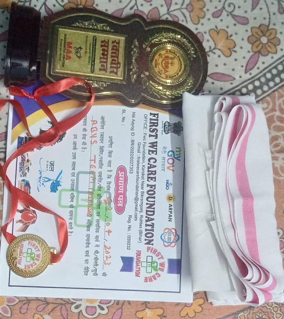 अखिल भारतीय युवा शक्ति की टीम को रक्तदान के क्षेत्र में उनके योगदान के लिए सासाराम में किया गया सम्मानित: