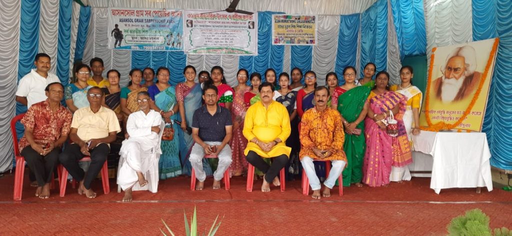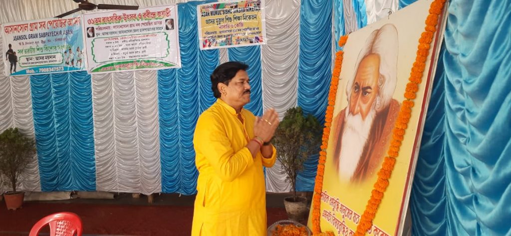 আসানসোল :আজ গোটা বিশ্বের সাথে সাথে আসানসোল শিল্পাঞ্চলেও বিশ্বকবি রবীন্দ্রনাথ ঠাকুরের 163 তম জন্ম জয়ন্তী উচিত মর্যাদার সাথে পালিত হল এরই অঙ্গস্বরূপ আসানসোলের হসপিটাল মোড় এলাকায় অবস্থিত সব পেয়েছির আসরের প্রাঙ্গণেও কবিগুরুকে স্মরণ করা হলো । এখানে সব পেয়েছির আসরের সভাপতি ও বিশিষ্ট শিল্পপতি এবং সমাজসেবী শচীন রায় সব পেয়েছির আসরের সম্পাদক মাধব রায় ডাক্তার পি কে দে সরকার গোপাল মিত্র শ্যামল সামন্ত রূপক রায় সহ সব পেয়েছির আসরের আরো বহু পদারিকারী এবং কচিকাঁচারা উপস্থিত ছিল। এখানে সকলেই কবিগুরুর প্রতিকৃতিতে মাল্যদান করেন এরপর নানারকম সাংস্কৃতিক অনুষ্ঠানের আয়োজন করা হয় । শচীন রায় বলেন রবীন্দ্রনাথ ঠাকুর আমাদের জীবনে কি অবদান রেখেছেন তা যদি বলতে শুরু করা হয় তাহলে শেষ করা যাবে না বাঙালির জীবনে মননে কবিগুরু ওতপ্রোতভাবে যুক্ত আছেন। শচীন রায় বলেন বিশ্বকবি রবীন্দ্রনাথ ঠাকুরের সাহিত্য সৃষ্টি কালজয়ী ছিল তিনি তাঁর সাহিত্য সৃষ্টির মাধ্যমে তদানীন্তন সময়ের নয় চিরকালের বার্তা দিয়েছিলেন তাঁর সৃষ্টি আজও সমান প্রাসঙ্গিক । তিনি নবপ্রজন্মকে আরো বেশি করে রবীন্দ্রনাথ ঠাকুরের সাহিত্য সৃষ্টি পড়ার এবং বোঝার পরামর্শ দেন